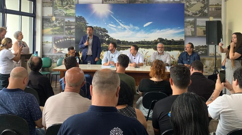 Acompanhando o prefeito, o vice Valmor Freitas, secretários Municipais da Educação, Italo Mainardi; da Fazenda, Mauricio Cardoso, o presidente do Sindicato dos Servidores Públicos Municipais de Alvorada (Sima), Rodinei Rosseto e o vereador Pretto (MDB).